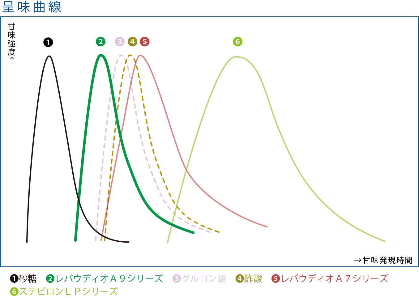 レバウディオサイドAを主成分とすることにより、従来型のステビア甘味料では20%程度が限界であった糖類の置換率を、20〜50%まで可能にした製品です。